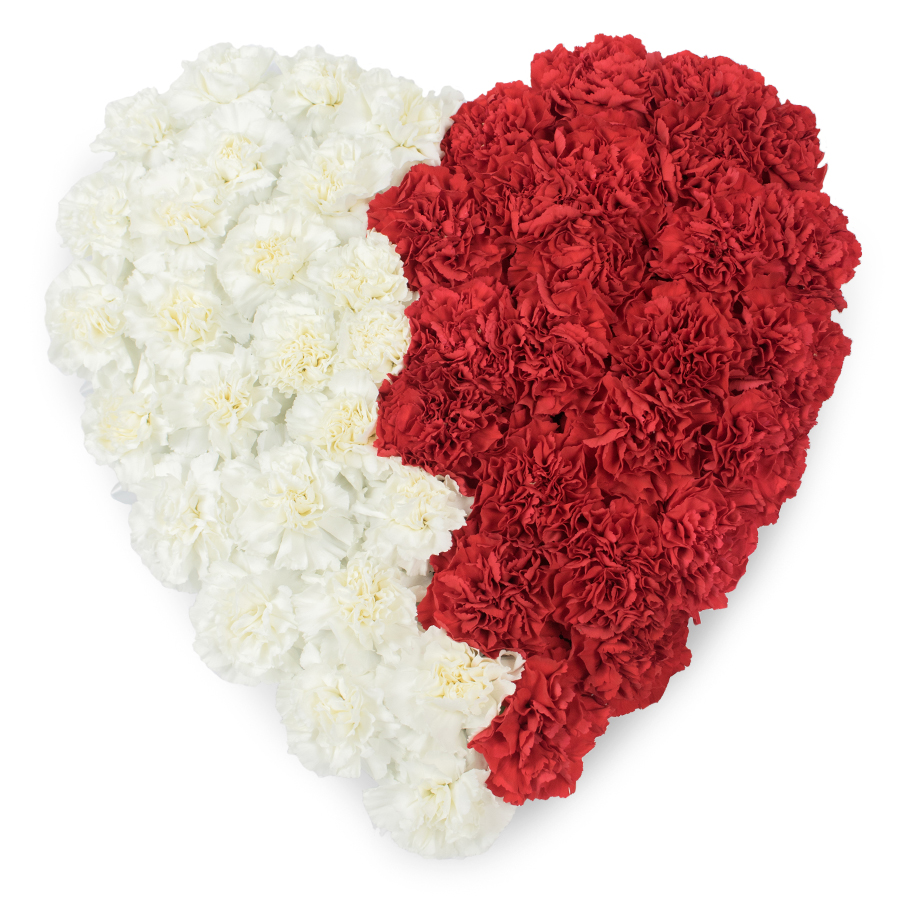 Express your deepest feelings with this beautiful and unique heart-shaped carnation bouquet.
